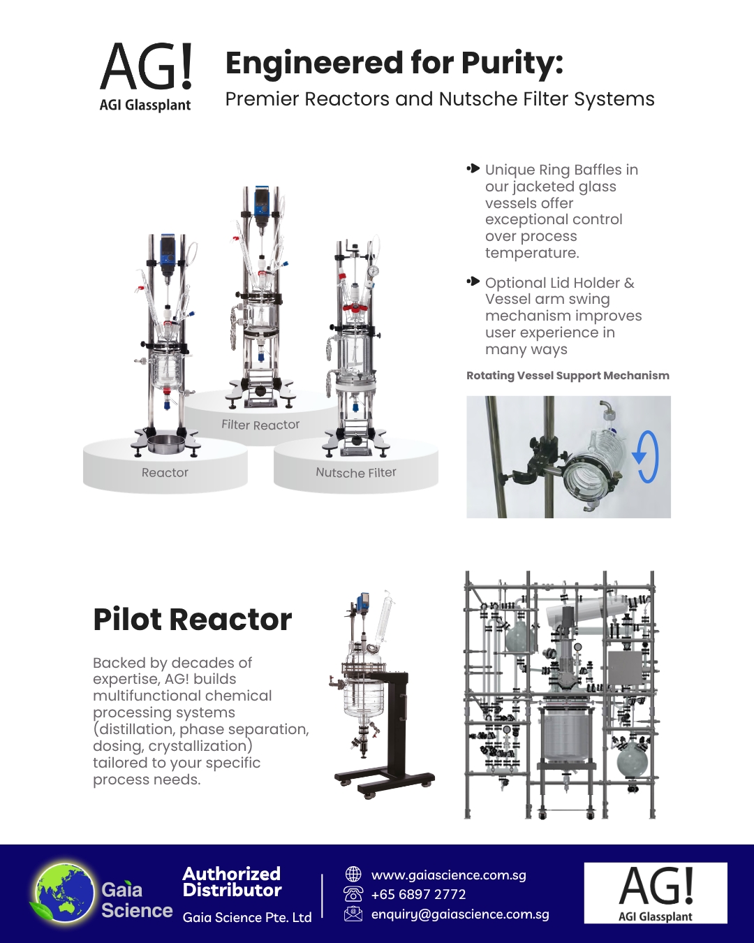✔ Glass Reactors – Reaction, mixing, distillation, crystallization