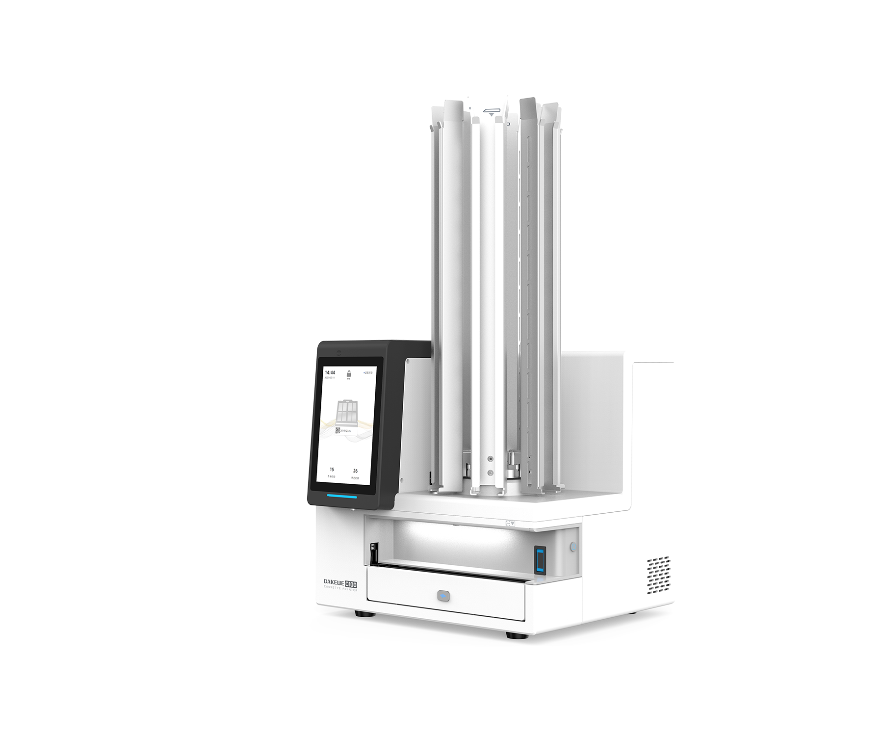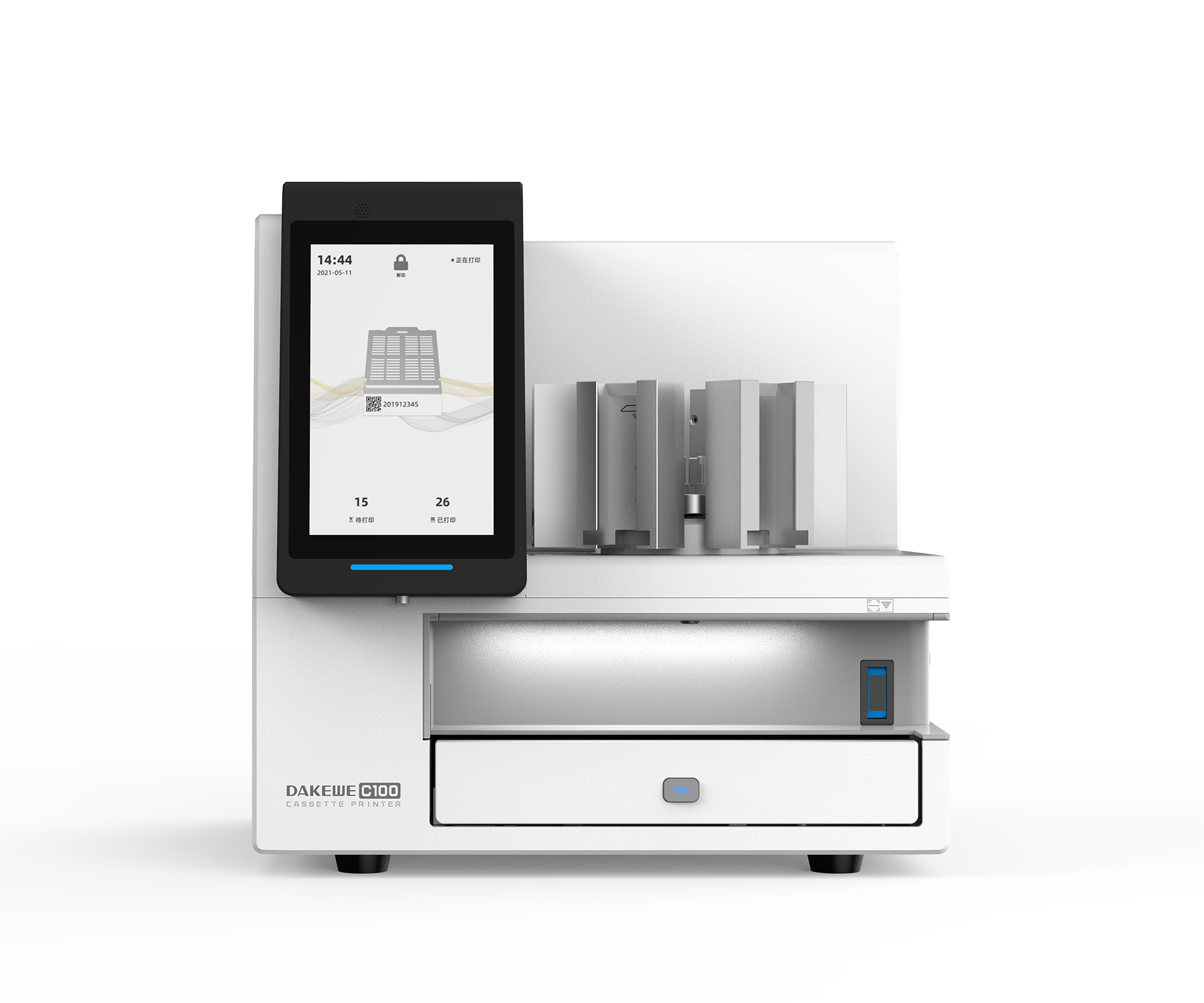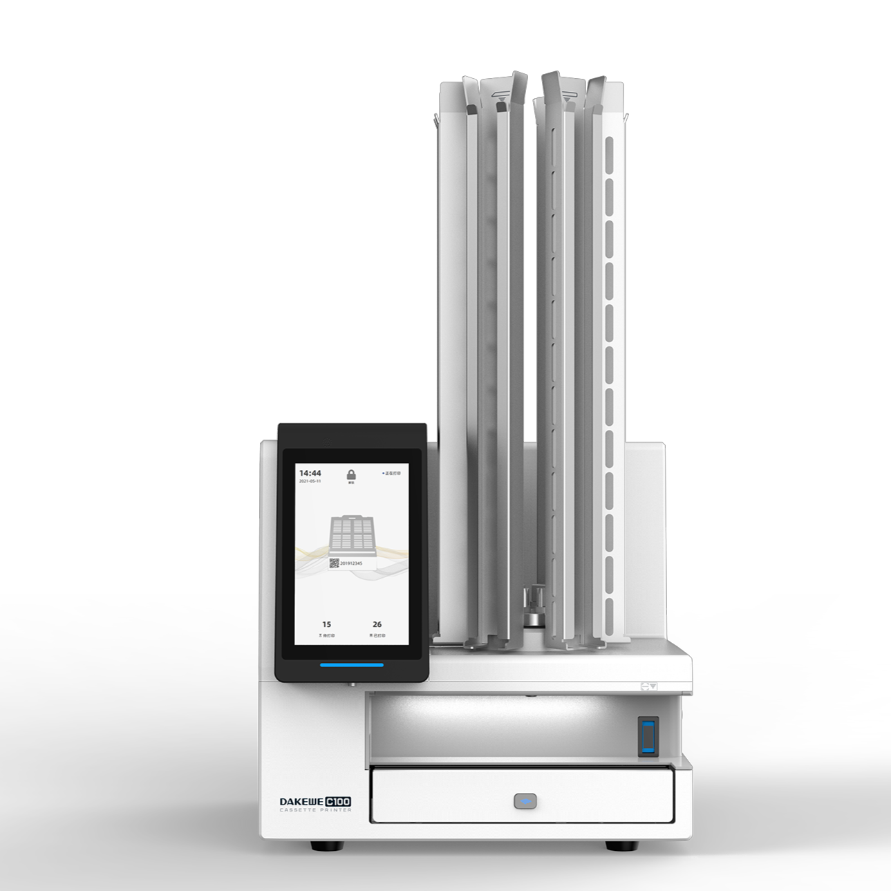 Dakewe C100 cassette printers marks cassettes at a rate of every 2.5 seconds, leading to an impressive throughput of 1440 cassettes marked per hour.