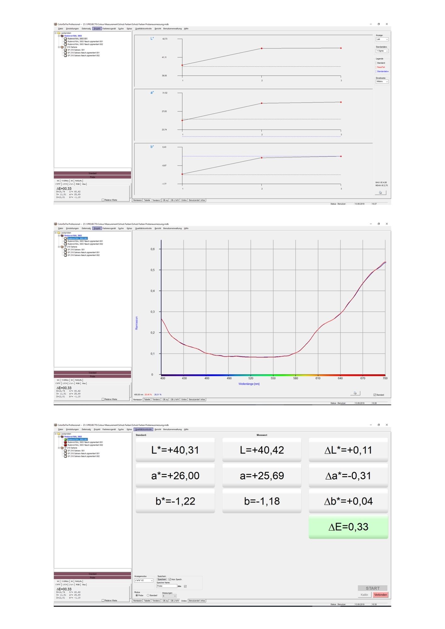 The ColorDaTra-database program is a very easy to use tool to evaluate, analyse, and protocol your colours and review