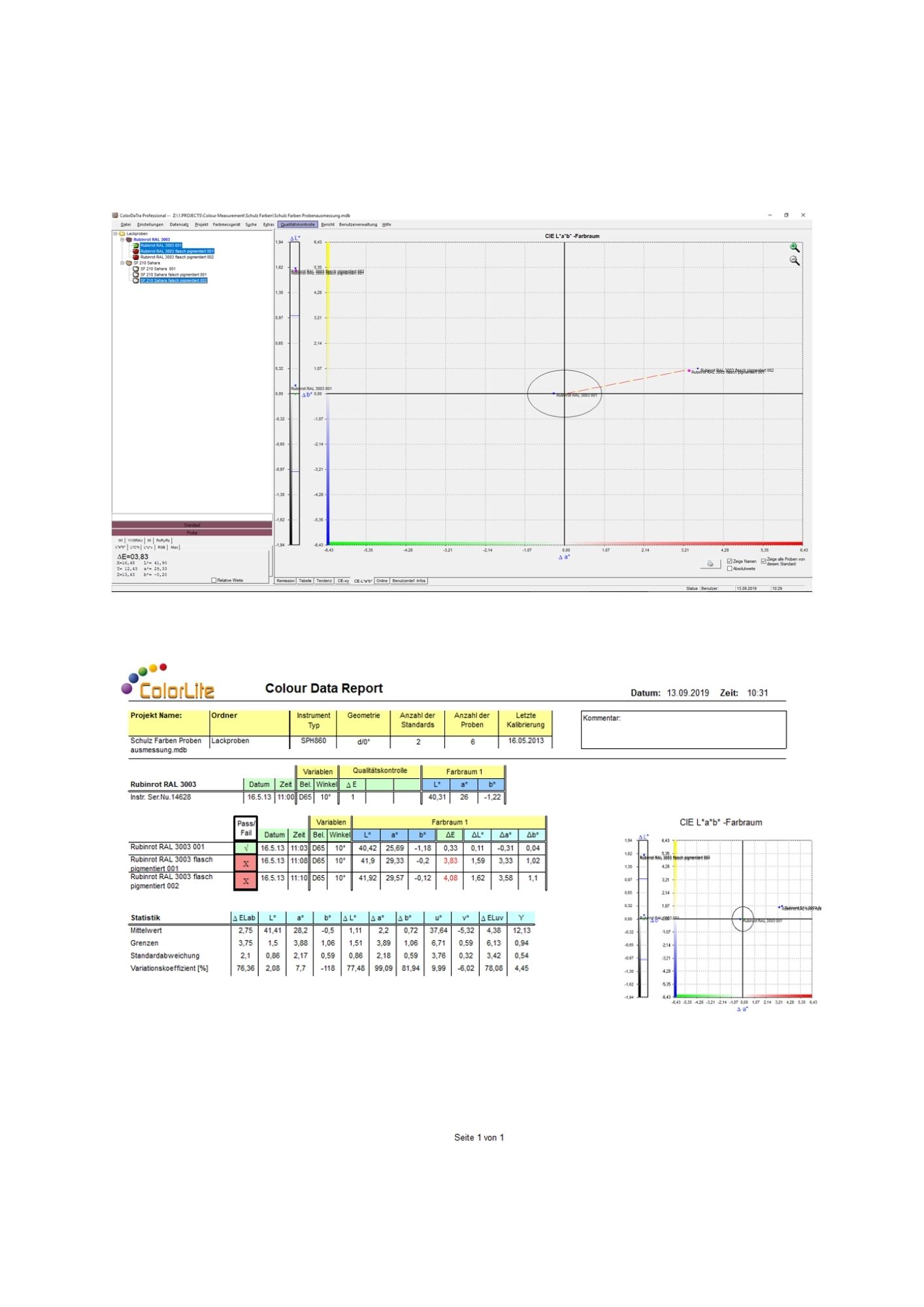 - Visualization of production models as CIE L * a * b * absolute and relative values and CIE L * a * b * Trend Chart.