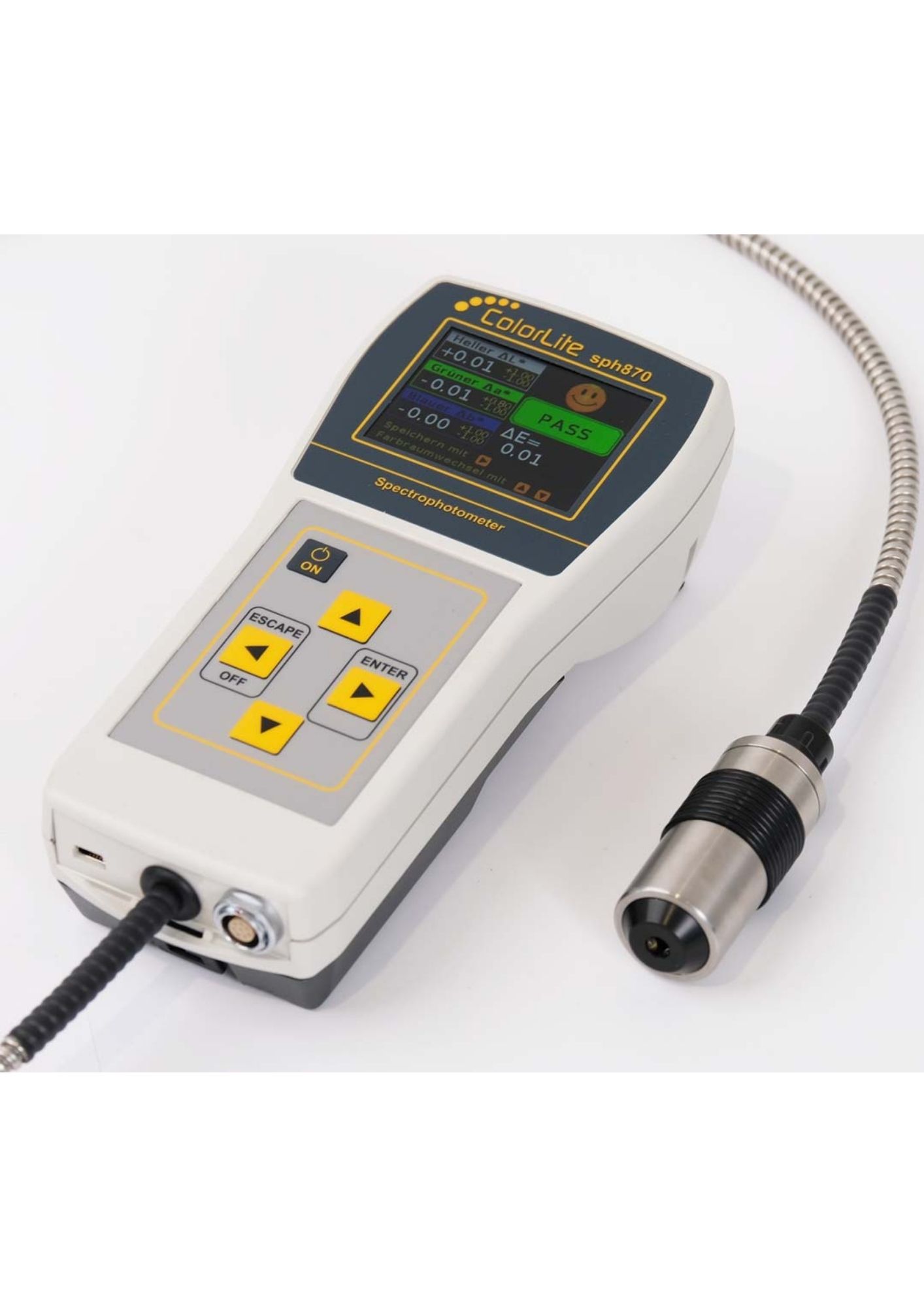 The sph870 is a user-friendly, portable spectrophotometer with a 45°/0° geometry, which due to the wide range of accessories available is suitable for a variety of surfaces and materials. For example, the system can be easily changed from the 45°/0° to a d/8° geometry simply by using our MA35 probe head adapter. The high-resolution technology enables a spectral scan in 3.5 nm steps in just 0.5 seconds. The menu is simple and well arranged, so that even untrained staff can perform the measurement task fast and accurate.