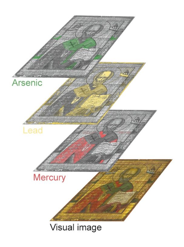 The Bruker ELIO can be used for point measurements or with the mapping option to retrieve the distribution of multiple elements at the same time on areas as large as 100 mm by 100 mm. Recording the XRF spectrum on an area this large is also termed macro-XRF or MA-XRF.