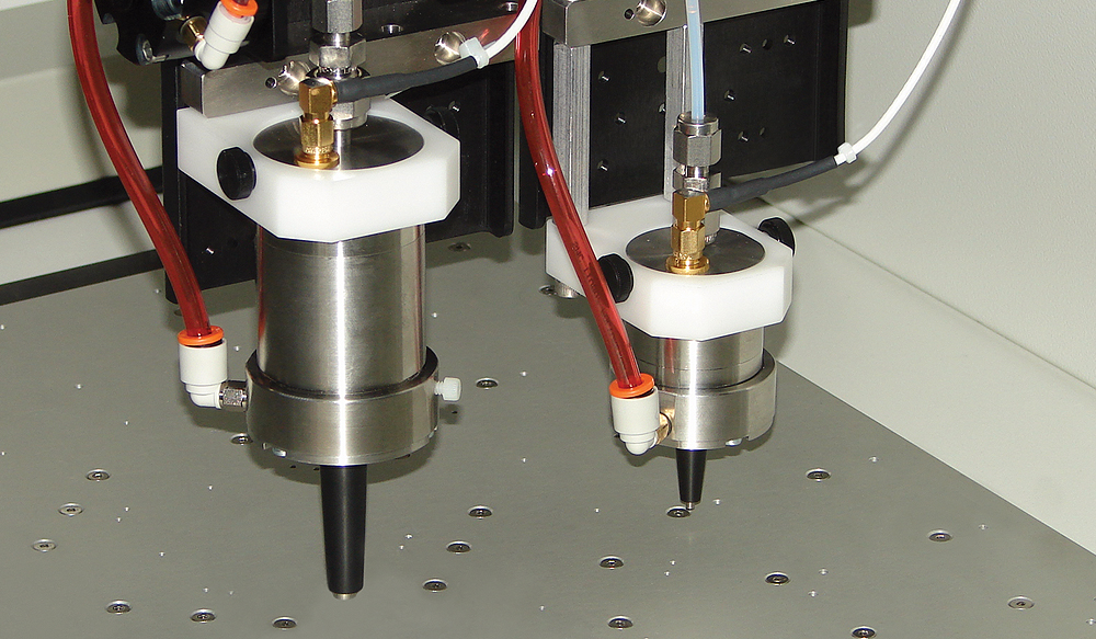Ultrasonic coating equipment is used for spraying thin film polymers and other conductive nanocoating chemistries in the manufacture of sensor components.