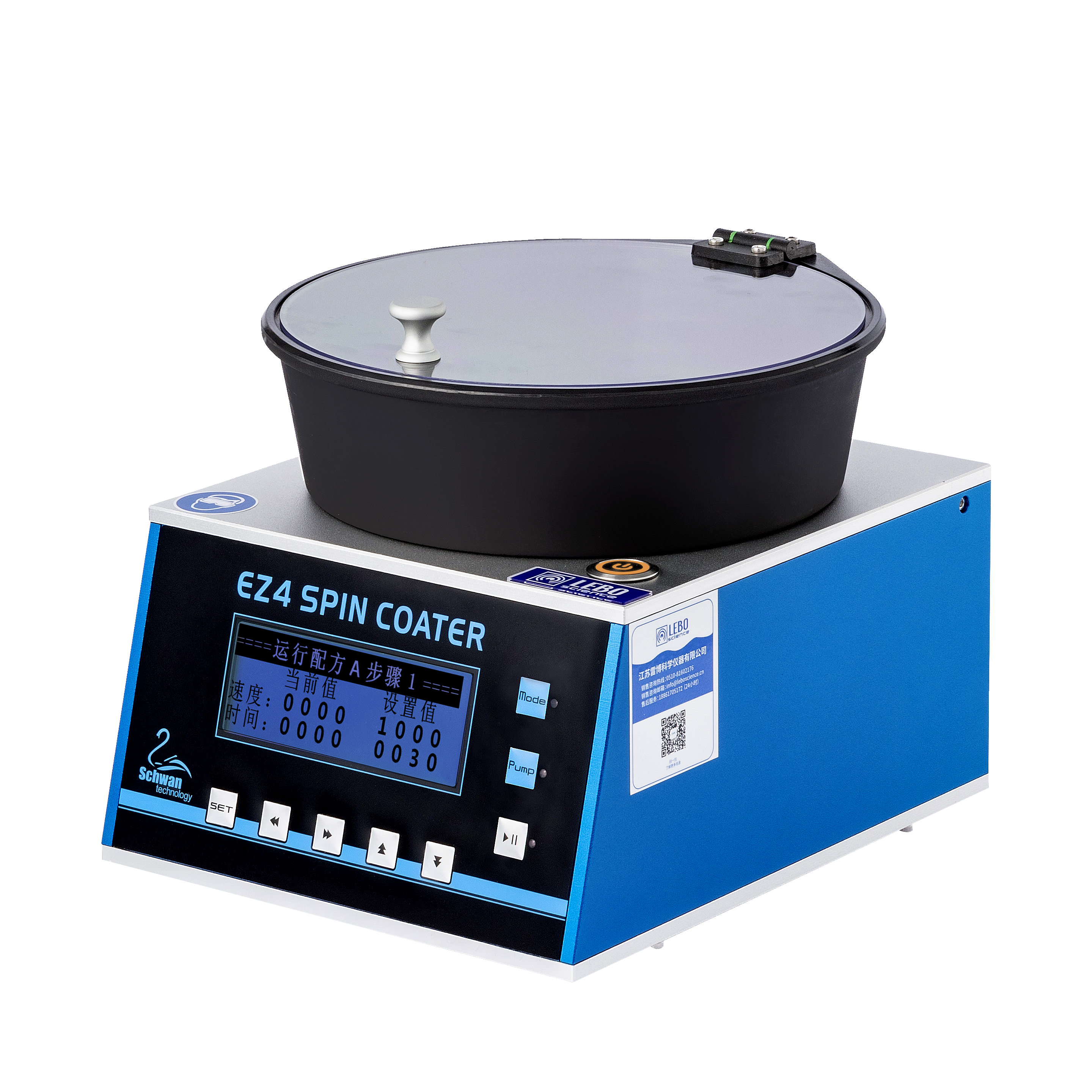 LEBO Science EZ4 Spin Coater is a high performance compact spin coater. It is designed for high uniformity thin material coatings. With its small footprint, the spin coater can be installed in a fume hood or a glove box. The upgraded program can store up to five recipes and each recipe could be edited with five spin steps.