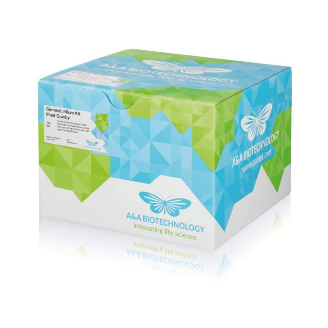 Gravity flow kit for genomic DNA purification from plant tissue. Sample size: up to 20 mg of dry or up to 100 mg of fresh plant tissue.