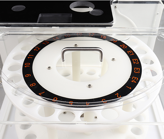 - Up to 24 positions auto sampler, the K1124 auto sampler does not require a separate power supply and is directly connected to the K1160 fully automatic Kjeldahl analyzer. The entire system is more energy efficient.