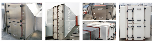 Modular design, compact structure, easy to transport, the use of building blocks stacked installation design, to meet the requirements of large volume air filtration, stacked up to three layers, can effectively save space.