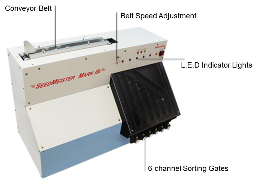 The Brimrose Solid -state Luminar 3076 SeedMeister AOTF- NIR Analyzer is a system specifically developed for high-speed non-contact and non- destructive 100% seed discrimination, prediction, quantification, and sorting based on seed properties such as oil, protein, moisture, starch, oleic, linoleic, sugar, etc. of major hybrid seeds such as corn, soybeans, coffee, watermelon, peanuts, sunflower and much more.