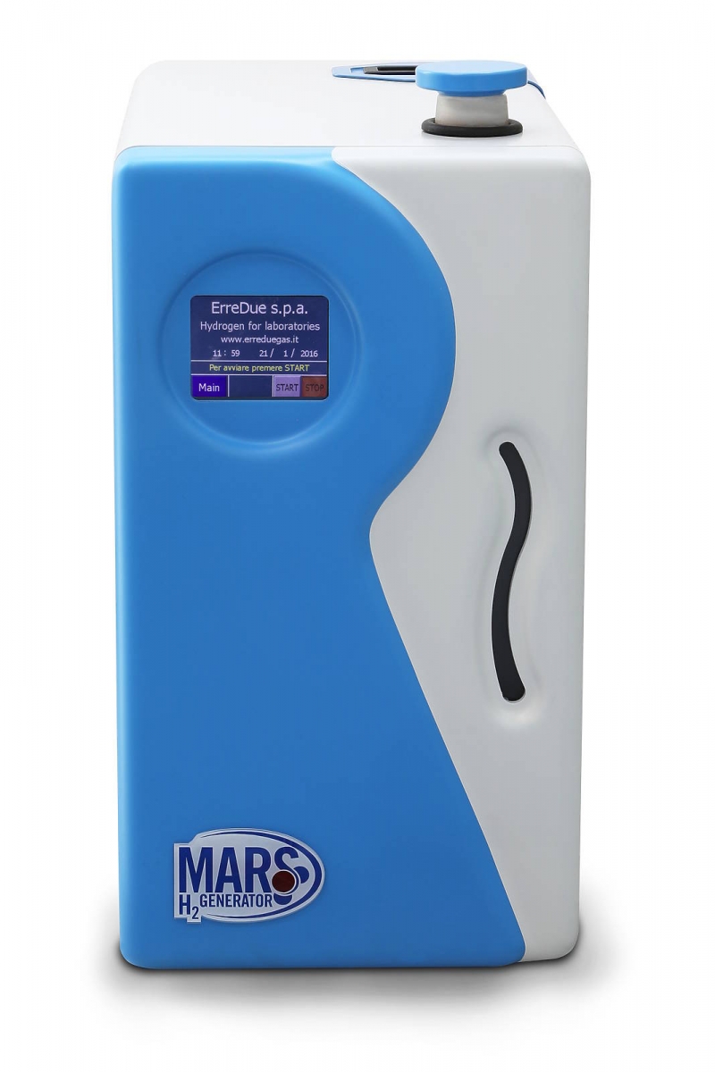 MARS Hydrogen generators use PEM technology (Proton Exchange Membrane) which allows the production of compressed, extremely pure Hydrogen without the need for external purification nor compression systems. MARS Hydrogen generators are just fed by distilled water and electric current, no caustic solutions are used. Hydrogen produced by MARS generators is ideal for every laboratory application: as a carrier gas for GCFID/ GC-NPD/GC-TCD, as a reagent gas for GC-ELCD/GC-HALL, as a reaction gas for ICP-MS. Moreover, the extreme purity of the Hydrogen gas produced by Mars generators makes it ideal for storage into metal hydrides canisters for use with fuel cells. MARS Hydrogen generators don’t require any maintenance and are safe and reliable.