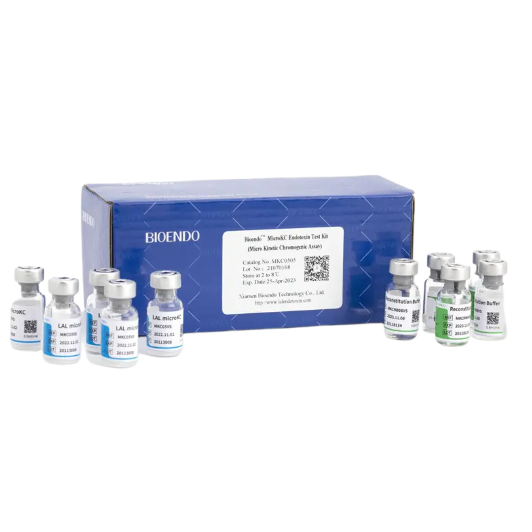 The Bioendo MicroKC Endotoxin Test Kit (Micro Kinetic Chromogenic Endotoxin Assay), which adopts the micro-technical kinetic chromogenic method, is equipped with a special customized 96-well microplates, which can be used in the endotoxin test of microbial detection system Elx808IULALXH and other conventional endotoxin detection equipment to realize the micro-kinetic chromogenic endotoxin detection. The micro KC kit meets the requirements of the rules of the Bacterial Endotoxin Test in Pharmacopoeia. Each test requires only the 25μL sample for the test and 25μL of lysate reagent. The testing principle is the same as that of the traditional kinetic chromogenic method for endotoxin detection. It has strong anti-interference ability and is very suitable for endotoxins quantitative detection in parenteral drugs, vaccines, antibodies, biological preparations and so on.