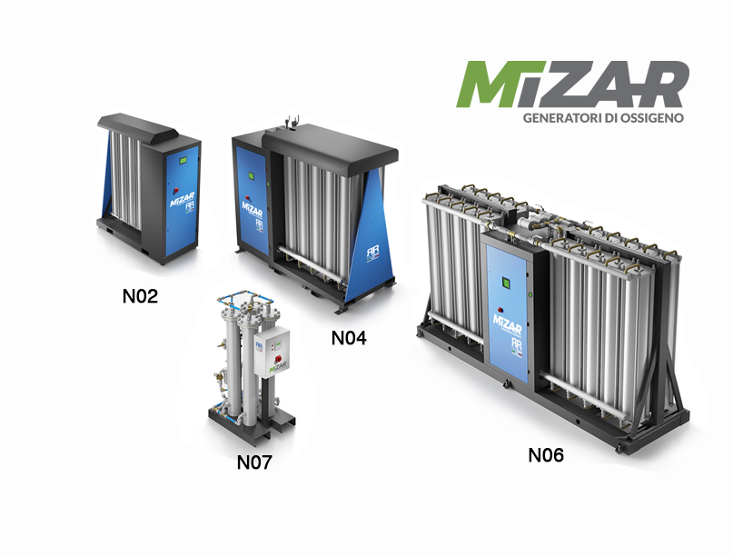 Mizar Oxygen generators produce oxygen with purity up to 95% with flows up to hundreds of cubic meters per hour.