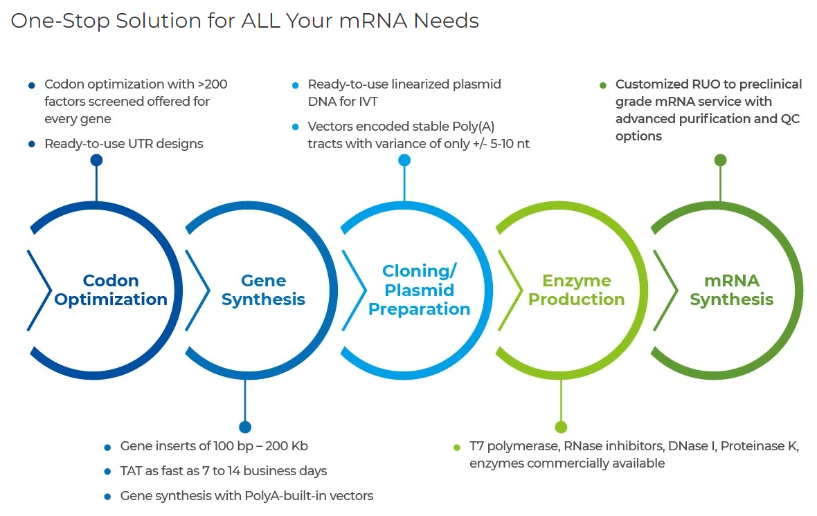 GenScript’s solution to mRNA production streamlines your workflow starting from gene synthesis to IVT mRNA production.