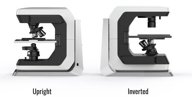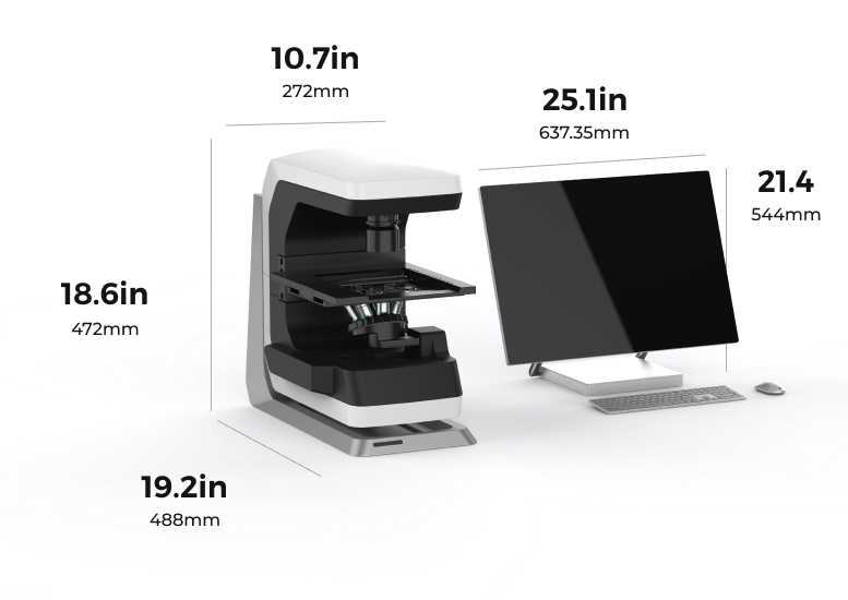 Cables, controllers, and power supplies are housed within the microscope to remove clutter and ensure connectivity.