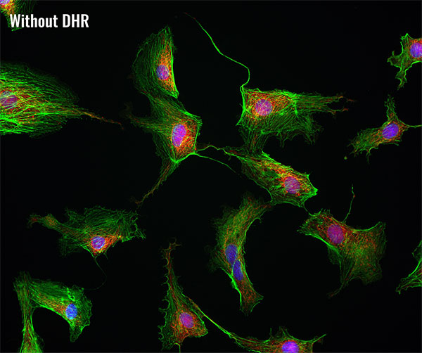 Widefield Fluorescence Images can encounter haze artifacts produced by out of focus light. ECHO’s proprietary Digital Haze Reduction (DHR) software module reveals fine details by suppressing noise and reducing blur to provide stunning, crystal clear images.
