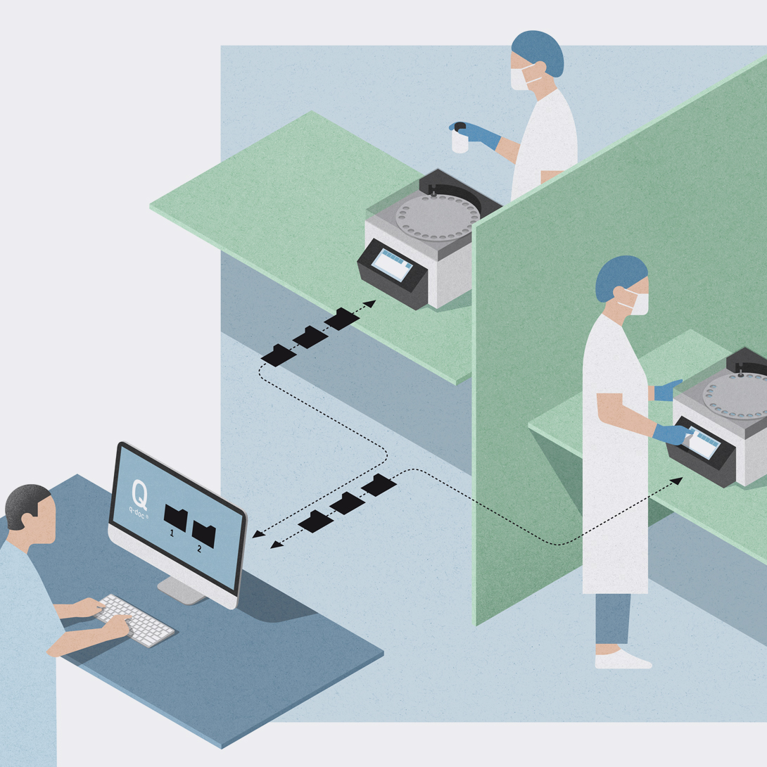 Network your ST50 without requiring a PC located next to the tester. Test runs are automatically sent to one or multiple instruments as needed. The operator only inserts the tablets to be tested and pushes “START” on the ST50 touch screen. As soon as a test has been completed, the q-doc® data management software automatically sends the next test run to be performed to the ST50.