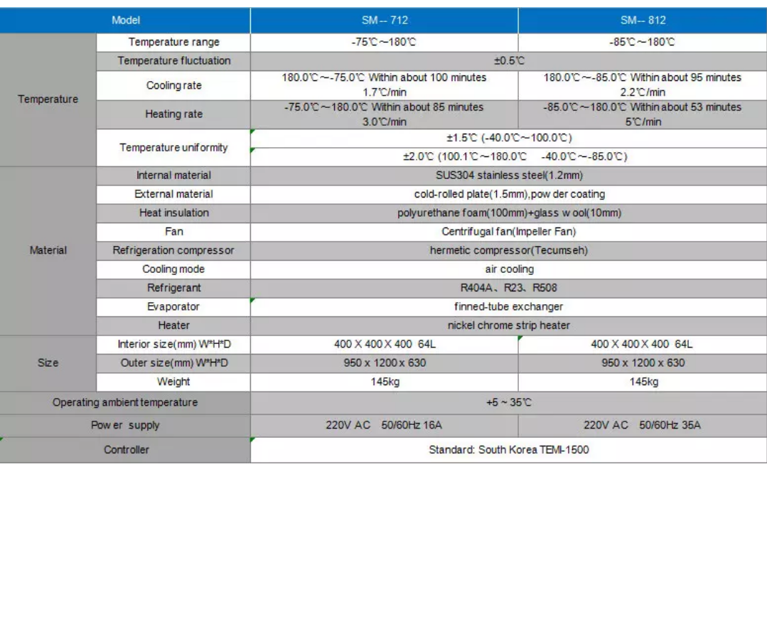 Despite Ultra Low Temperature Test Chamber compact size, the MC series can achieve low temperatures of -75 or -85°C the lowest range of it's class. On the high end, 100 or 180°C can be reached, depending on the specific model. The interior size of the MC series is 2.2 cubic foot, same as model SU-662 and slightly larger than BTZ-133 & BTZ-175.