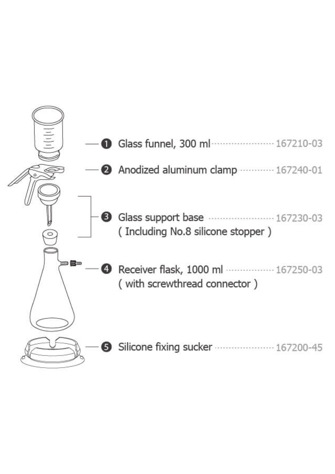 | 167230-03 | (3) Sintered glass support base ( including No.8 silicone stopper) |