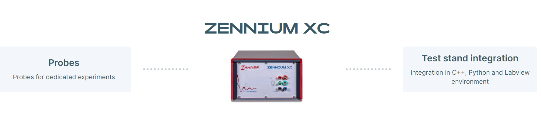 ZENNIUM XC potentiostat can be controlled remotely and can be involved in a Python, C++ or Labview test stand.